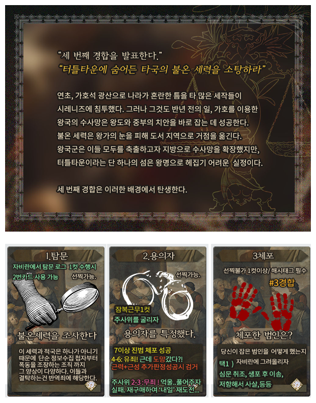 카드 소모로 제국의 첩자를 찾아내는 경합이 발표됩니다.