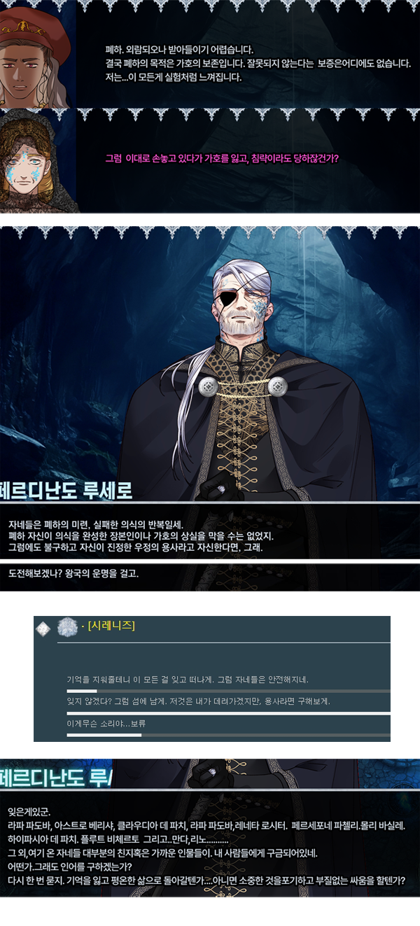 검은 물거품은 여러명이 연관된 스토리라, 궁금하신 분은 검은물거품 정리페이지(클릭)을 참고해주세요. 비번은 별도 문의 부탁드립니다.(혹은 시레니즈 - 검은물거품 참가자 프로필, 정보길드 등에 적혀 있습니다)